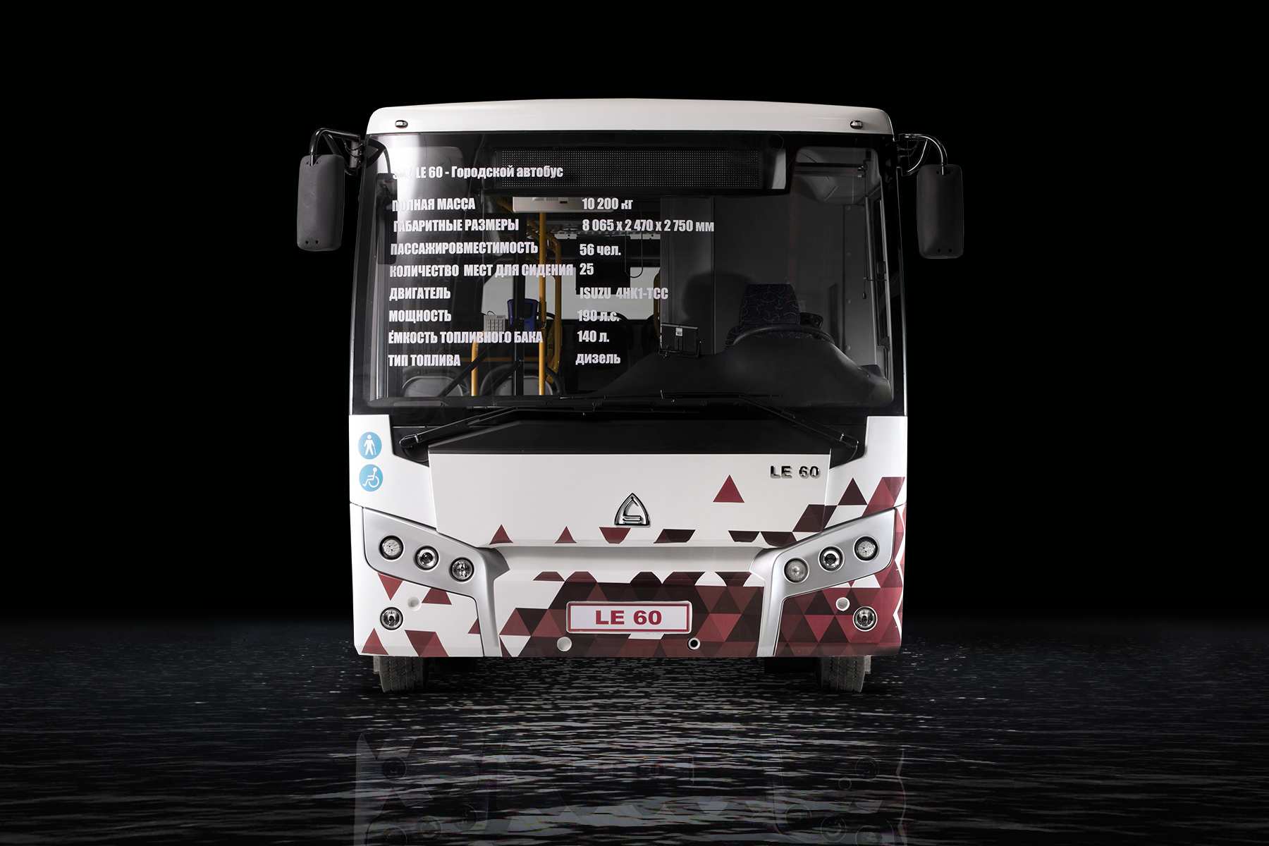 Кондиционер, электронный маршрутоуказатель, аппарель для инвалидов, запасное колесо, Ручки на поручнях, USB порты для зарядки